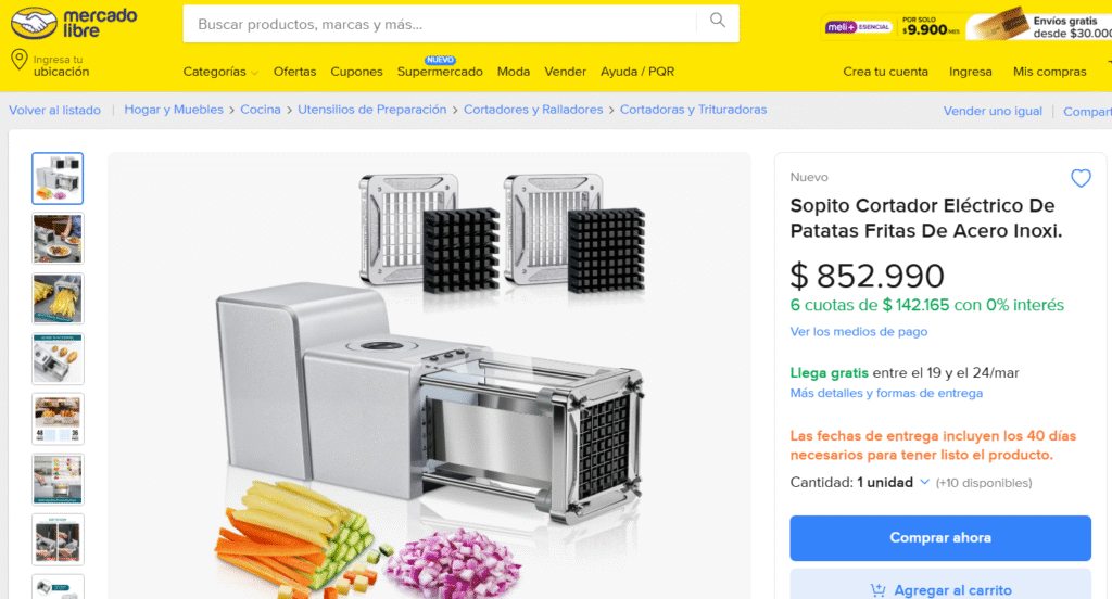 Te mostramos varios productos de cortadores de papas fritas eléctricos con los mejores precios en el mercado colombiano. Competencias como Mercado Libre ofrecen estos mismos artículos, pero a un valor más elevado.