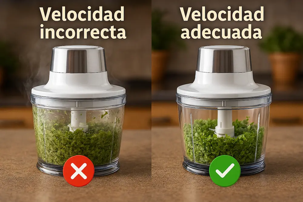 - Ajusta la velocidad según el volumen del ingrediente: tandas pequeñas a velocidad baja, grandes cantidades a velocidad mayor, siempre respetando las recomendaciones del fabricante.