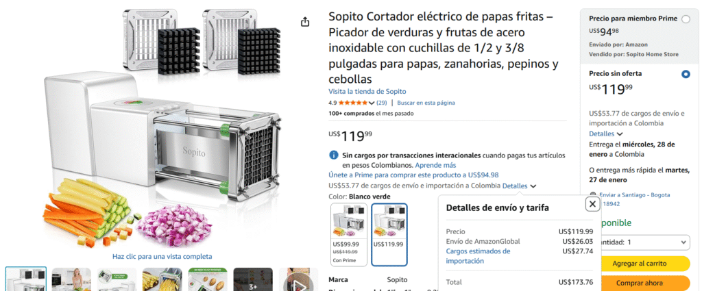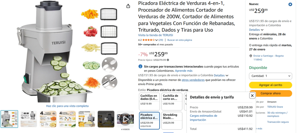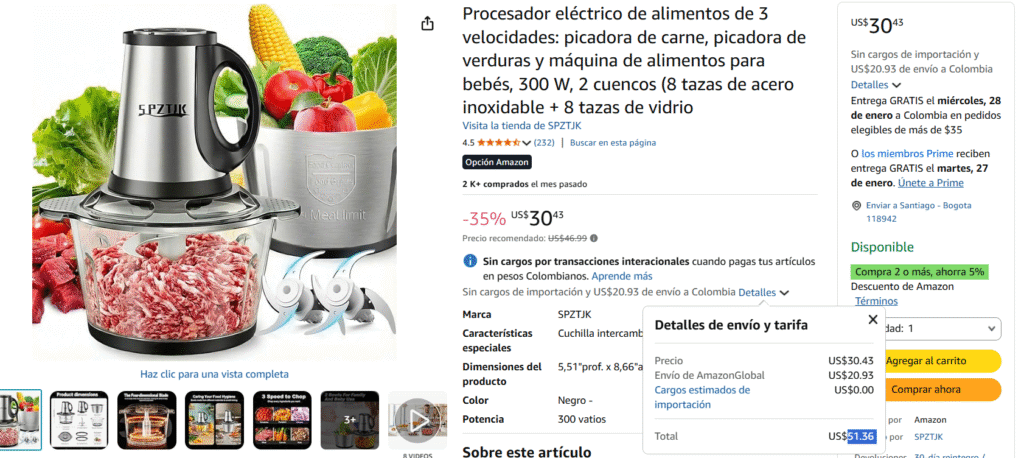 | Los precios de nuestra competencia con este producto suelen ser más elevados, como se observa en las imágenes, con valores que van desde $287.990 COP hasta superar los $323.496 COP. | Recuerda que los precios varían según el dólar y tienes que hacer la conversión. Este producto Afiliado puedes encontrarlo entre COP$195.000 – $220.000. puedes dirigirte al botón “Comprar en Amazon” y revisar el producto en detalle, donde se mostrará el valor de la compra. |